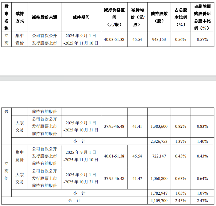 中国经济网北京11月12日电 力高食品(300973.SZ)昨晚披露股东减持计划完成公告称,公司“于2025年8月6日披露了《关于股东减持股份的公告预披露》,股东上海力高企业管理咨询合伙企业(有限合伙)(iInAfter参考管理咨询合伙企业(有限合伙)).ock交易减持计划公告后三个月内减持2,326,800股(含本金),即不超过利高创及员工持股平台以外的股份数量。股东、实际控制人彭宇辉的管理情况。连续90天;上述减持计划已完成 的股份,占总股本的1.37%; 2021年,发行数量4234万股,发行价格28.28元/股。募集资金净额110,586.79万元。建设项目、生产生产改造及技术改造项目、卫辉冷冻糕点烘焙食品生产基地建设项目、研发中心建设项目、智能化信息化升级改造建设项目、追加基建项目。力高食品发布总成本9150.73万元,其中保荐机构获得赞助及承销费7184.25万元。除首次公开发行股票外,力高食品还发行了数量不详的可转换公司债券。经中国证监会注册证监会《关于力高食品股份有限公司发行公司债券未特定事项登记的批复》(证监许可[2023]号)。本次发行募集资金总额为人民币 950,000,000.00 元。扣除本次发行相关费用(包括预付自筹资金的部分兑换费)人民币 12,162,518.81 元(不含税),上述募集资金已于2023年3月13日到位,并经中审众环会计师事务所(特殊普通合伙)验资,并出具了“中环验字(2023)第0600007号”《验资报告》,经测算,力高食品两次募集资金达到。 21.47亿元。